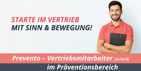 DU BIST KOMMUNIKATIV, SPORTLICH UND WILLST DIR FLEXIBEL WAS DAZUVERDIENEN? Dann komm ins Team Prevento – wir bringen Bewegung, Gesundheit und mentale Stärke in Schulen, Vereine und Betriebe in ganz Deutschland. Wir suchen engagierte Vertriebstalente (m/w/d), die Lust haben, Präventionskurse… Weiterlesen →